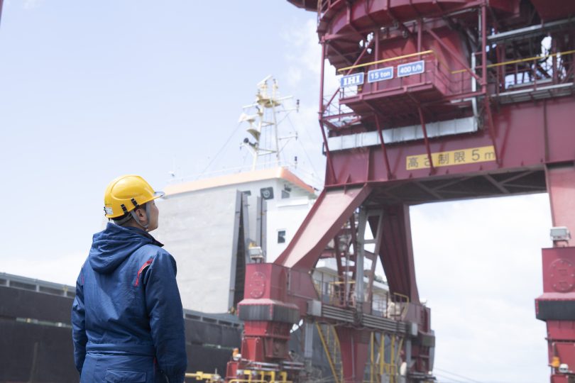 朝は8時すぎに事務所を出て、アンローダーの電源投入や荷役準備から始まり、業者との打ち合わせ、修理作業の立ち会いなどを行います。